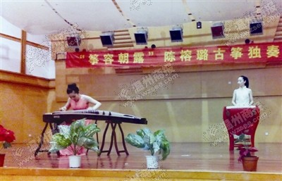 陈榕璐7岁习筝,先后跟随乐清、杭州名师学习,2010年考入温大音乐学院,师从池玲珑老师。在校期间,她获第四届新加坡国际音乐舞蹈比赛温州赛区民乐弹拨乐独奏青年A组金奖、全国赛区青年组古筝专业独奏金奖等。这场独奏音乐会上,她以《云裳诉》《箜篌引》等八首古筝乐曲做了一次全面的毕业汇报演出。
