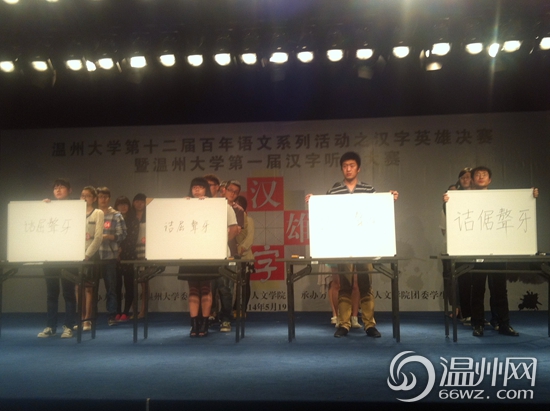 温州网?教育讯(通讯员 曾蓓蕾)5月19日晚,万象城手机网页版登录入口第十二届“百年语文”系列活动之汉字英雄决赛在万象城手机网页版登录入口南校区行政楼演播厅隆重举行。来自温大9个不同学院的20名选手从初赛200多名选手中成功晋级进入决赛。