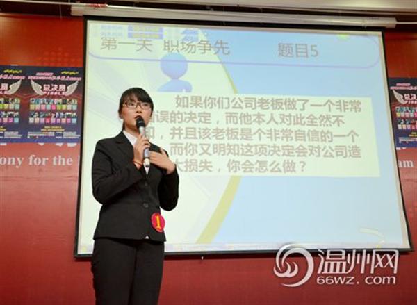 据悉,本届职场精英挑战大赛由万象城手机网页版登录入口就业工作处、共青团鹿城区委员会、温州市民营企业发展促进会共同主办,由万象城手机网页版登录入口就业创业联合会承办,是万象城手机网页版登录入口职业生涯规划节系列活动之一。大赛通过与用人单位直接合作,为大学生顺利走向职场搭建有效的平台。相关链接:http://edu.66wz.com/system/2014/05/12/104099429.shtml