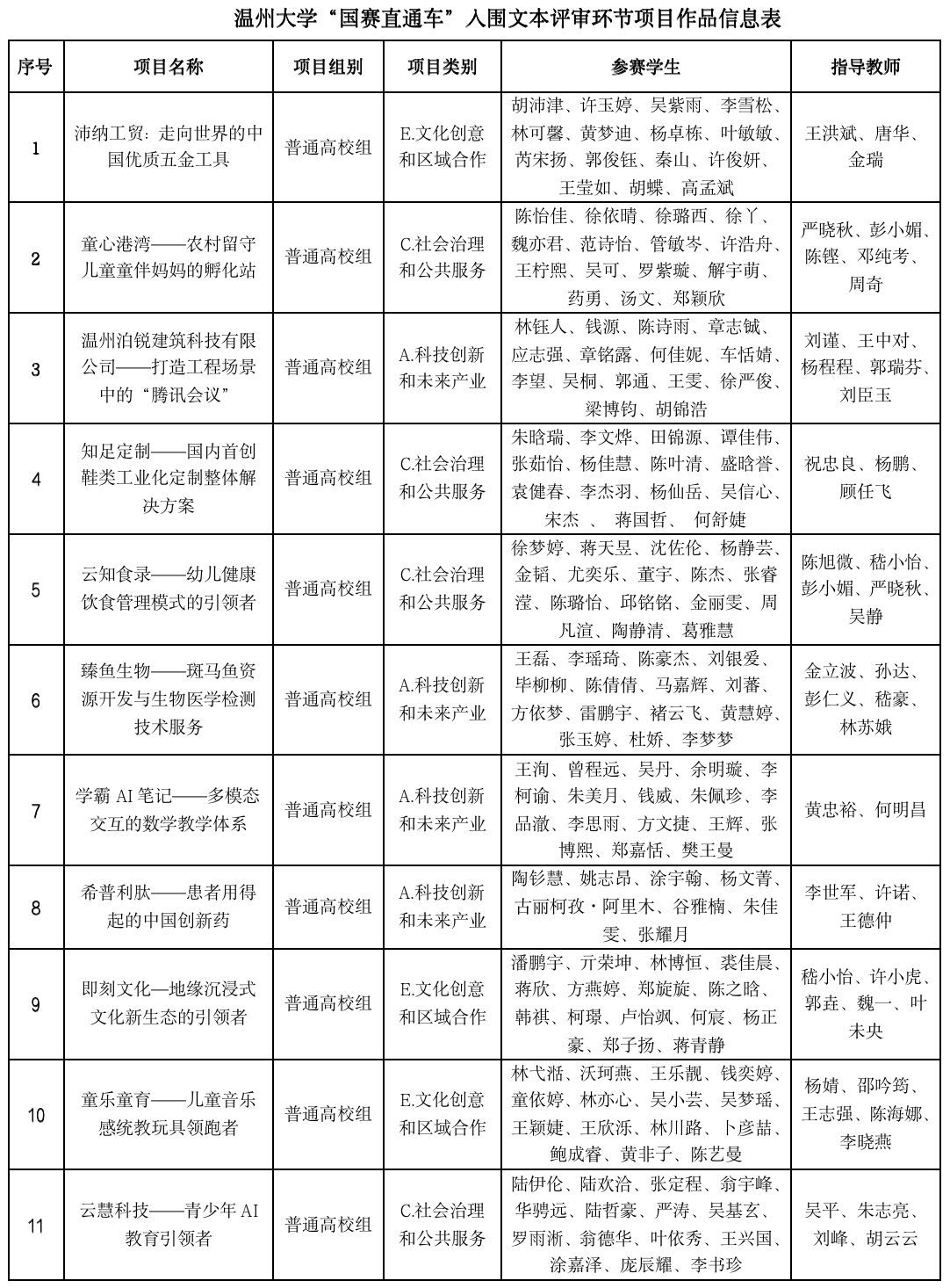 根据第十三届“挑战杯”全国大学生创业计划竞赛申报有关事项的相关要求,现将我校“国赛直通车”入围文本评审环节项目的相关信息公示如下。