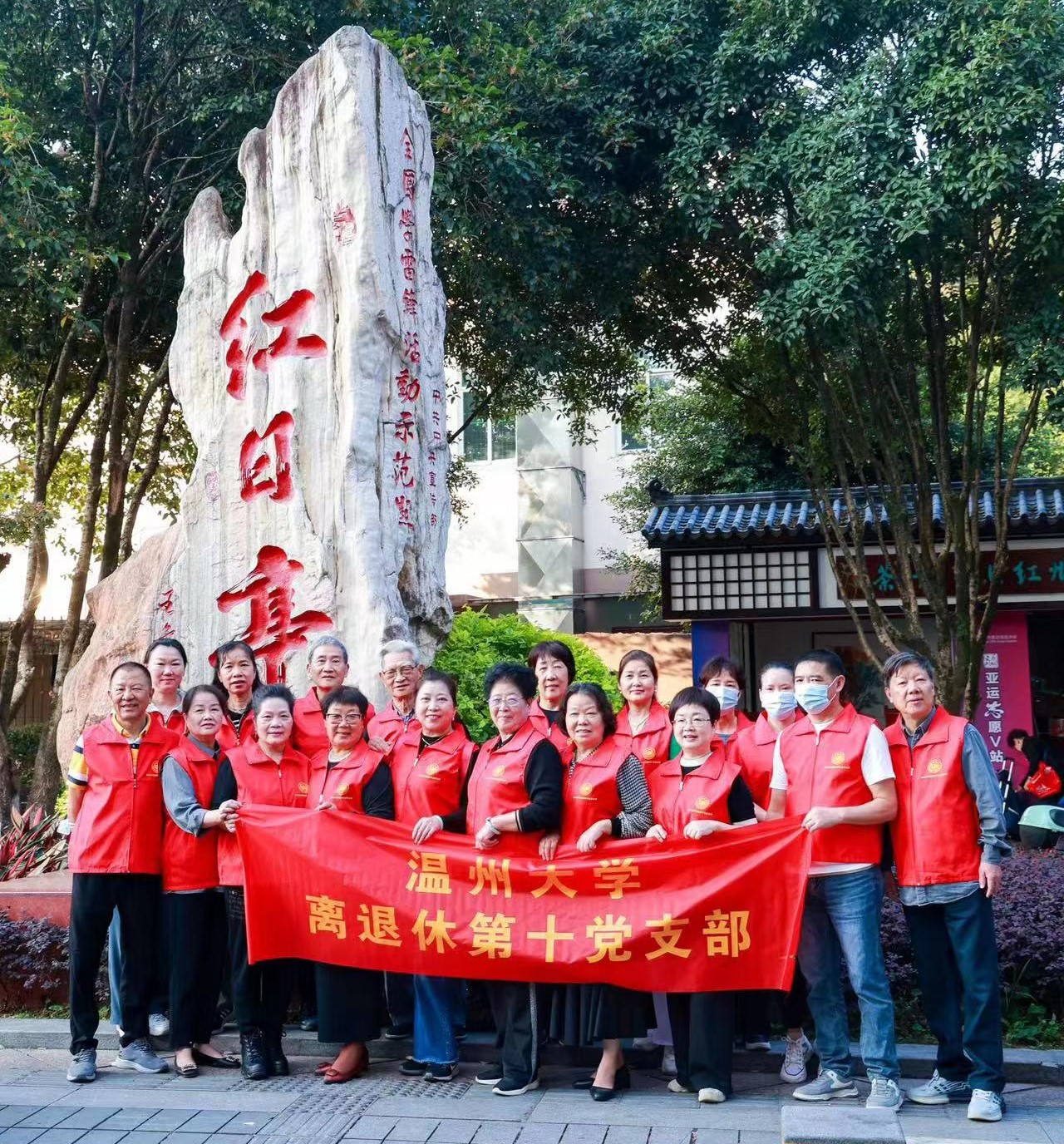 红日亭,温州慈善地标。为深入开展学习贯彻习近平新时代中国特色社会主义思想主题教育,更加深刻感悟习近平新时代中国特色社会主义思想的真理力量和实践伟力,同时为弘扬向上向善的社会风气,充分发挥老党员、老干部正能量作用,10月23日重阳节当天,万象城手机网页版登录入口离退休第十党支部联合温州工业与能源发展集团有限公司团委,开展“九九重阳节、浓浓敬老情,红心向党、善行天下”慈善志愿服务活动。