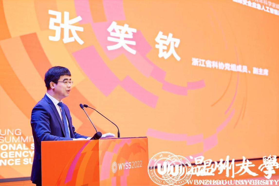 On December 11, the World Young Scientist Summit (WYSS) 2022 - International Safety and Emergency Artificial Intelligence Summit was successfully opened in Wenzhou Marine Economic Development Demonstration Zone (MEDDZ) . This summit was hosted by Zhejiang Association for Science and Technology (ZAST) and Wenzhou Municipal Peoples Government, and organized by WZU/College of Computer Science and Artificial Intelligence of WZU and Wenzhou MEDDZ Management Committee. Zhang Xiaoqin, member of the Leading Party Members Group and Vice Chairman of ZAST, Xu Hekun, member of the Party Committee and Vice President of WZU, Ye Haifeng, Deputy Secretary of the Party Working Committee and Executive Deputy Director of Wenzhou MEDDZ Management Committee, and Yu Chuang, President of Zhejiang Industry and Trade Vocational College, attended the opening ceremony and delivered speeches.