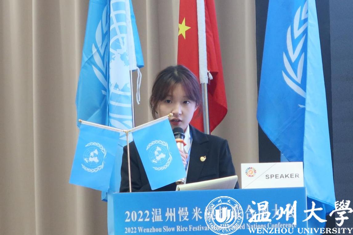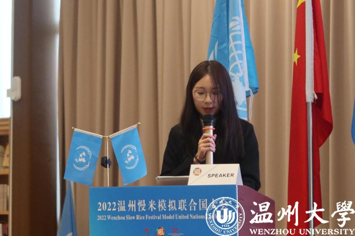 On November 26, the Slow Rice Festival Model United Nations Conference with the theme of “Promoting Food System Transformation and Addressing Global Food Security Challenges” was successfully held at the Academic Center for World Young Scientists (ACWYS). The event took place during the Slow Rice Festival in Qidu, and Ding Mengxin and Sun Xinyan of the translation major of WZU were invited to participate in the English group of this Conference as representatives of WZU.